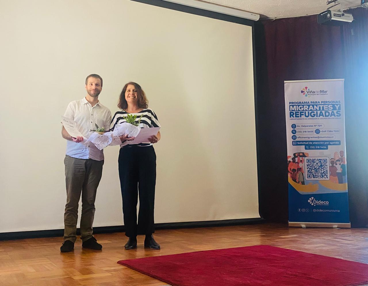 La presentación contó con la presencia de personas protagonistas del documental, autoridades y representantes de los equipos municipales involucrados y de la Escuela de Sociología. En la instancia tomaron la palabra Ancka Kepec, Coordinadora del Departamento de Atención a Grupos Prioritarios; Daniela Jara, directora de la Escuela de Sociología; Verona Rodríguez, encargada del Programa de Personas Migrantes y Refugiadas; y Dianny Del Carmen Bolívar, una de las mujeres entrevistadas, quien compartió su testimonio durante la actividad.